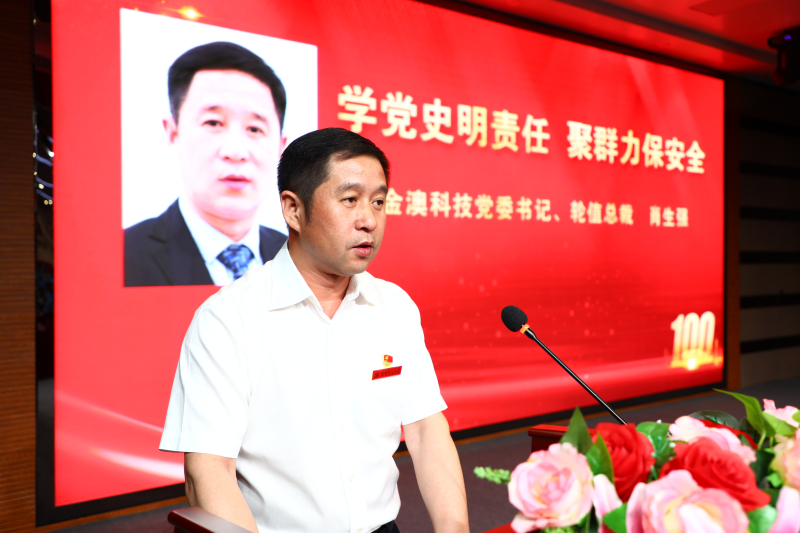 公司党委书记、轮值总裁肖生强同志以《学党史明责任 聚群力保安全》为题,为大家上了一堂生动的党课。结合当前企业的发展形势,从2个方面阐述了党员干部如何紧跟新形势,提高新认识,适应新任务,做出新成绩。一是要让党员干部进一步转变作风,公司每名党员干部都要把“四个意识”内化于心、外化于行,体现在实际行动中,坚定政治立场,做到道德品行合格,严守纪律和规矩,严格按规章制度办事,对公司安排的各项工作要绝对服从,要不打折扣的完成;二是要让党员干部进一步绷紧安全弦,不仅要有“我是安全第一责任人”的思想意识,还要有“安全工作时时刻刻都是起点”的思想意识,从安全上谋创新,更要有“安全就是最大的效益”的思想意识,从安全上谋发展。