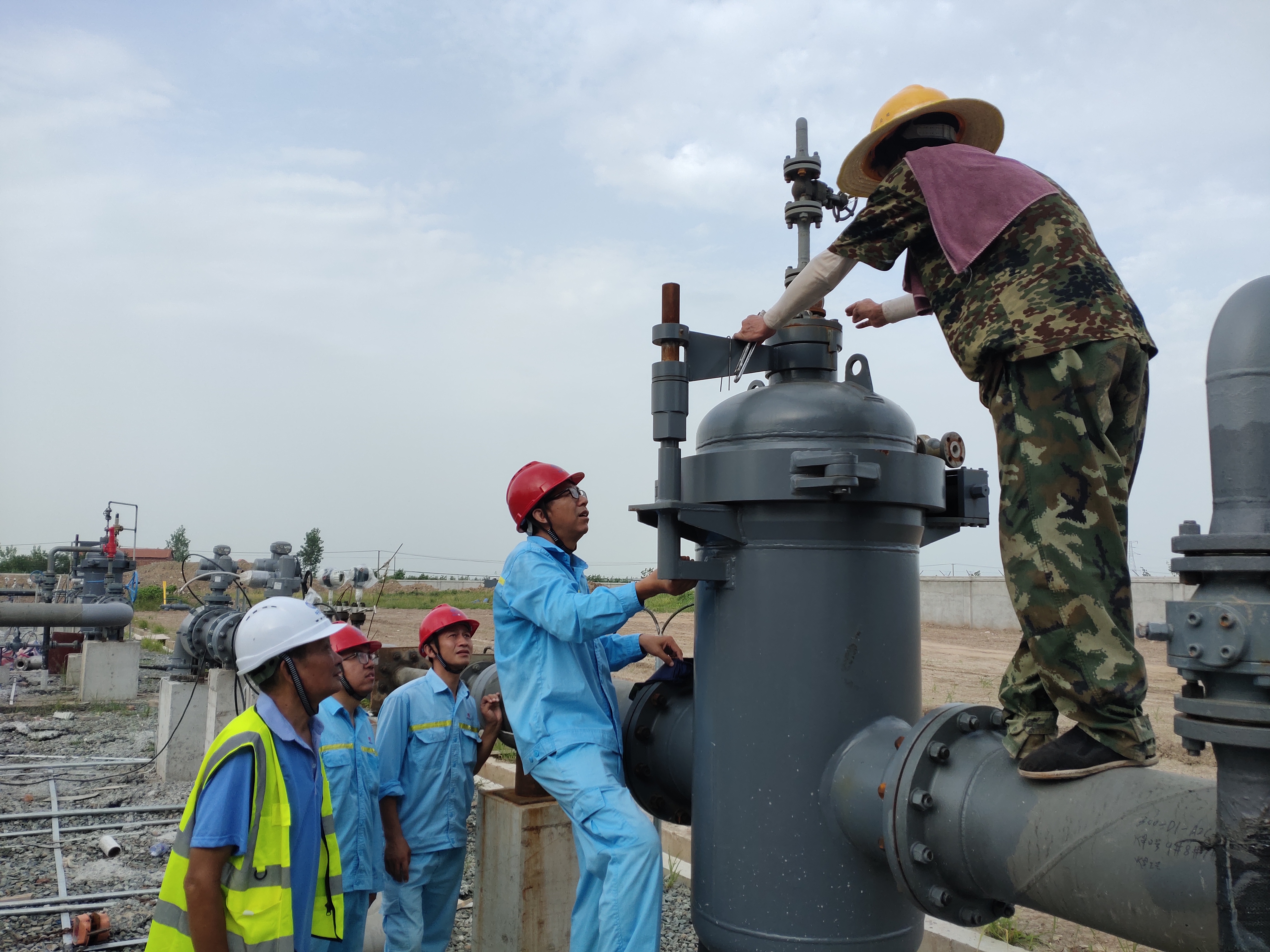 公司党委委员、输油管道公司副总经理肖书祥组织部门人员及安装、监理单位到监利-潜江输油管道项目监利输油站施工现场进行管道试压及沿线检查。
