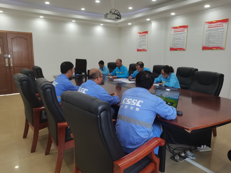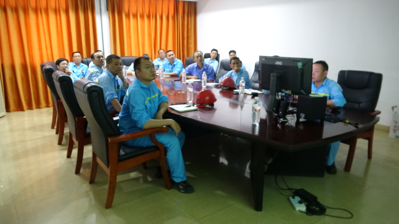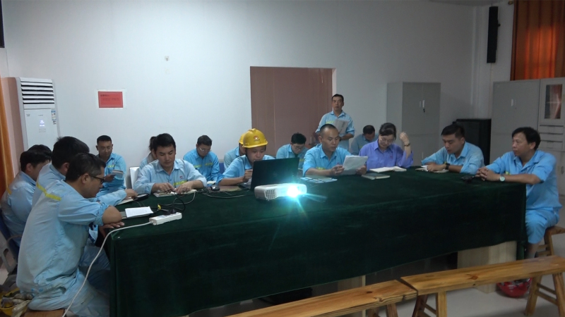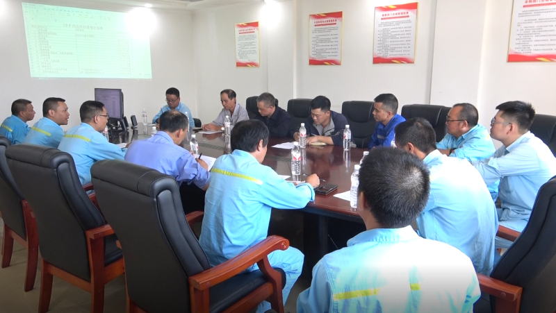 总裁助理郑经友,维修党支部书记、设备维修公司总经理王直山,党员、维修车间副主任肖生运,党员、技术研发中心副主任周冷月组织外来施工单位对711热媒水产蒸汽项目压缩机组试机问题进行讨论分析,并对下一步试机工作进行安排。
